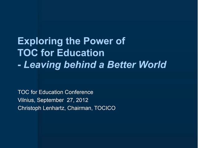 Exploring The Power Of Toc For Education Leaving Behind A Better Wo